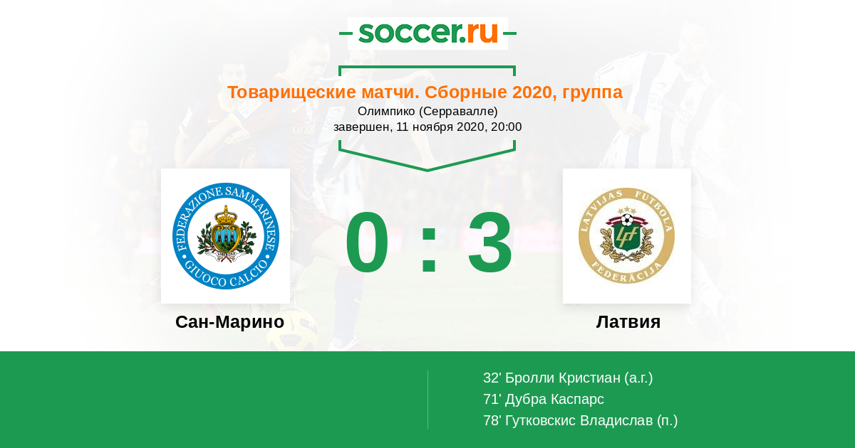 Протокол матча Сан-Марино против Латвия