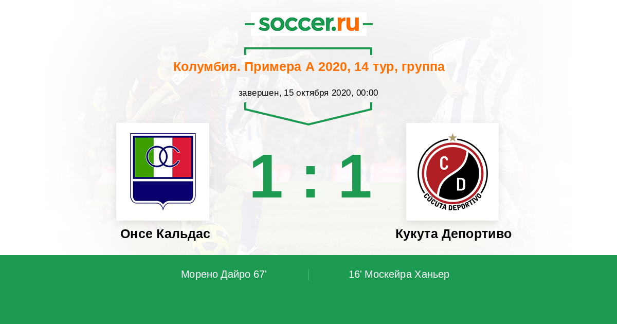 Протокол матча Онсе Кальдас против Кукута Депортиво