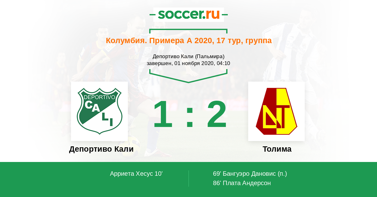 Протокол матча Депортиво Кали против Толима