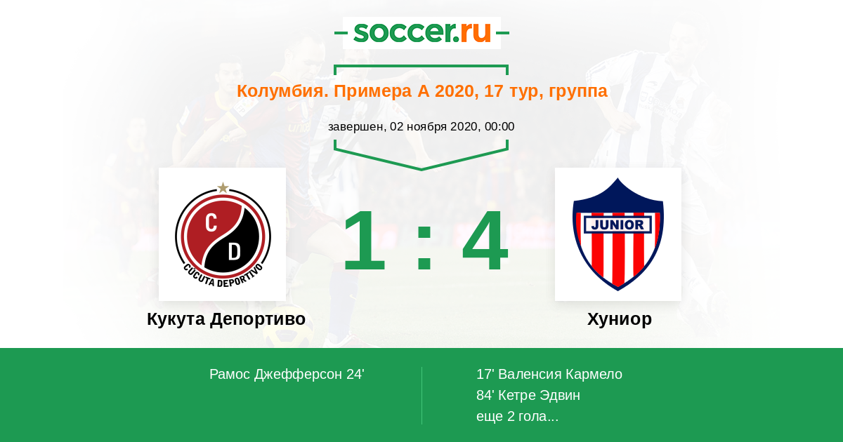 17' (0:1) Валенсия Кармело (19) (Виера Себастьян (1))
