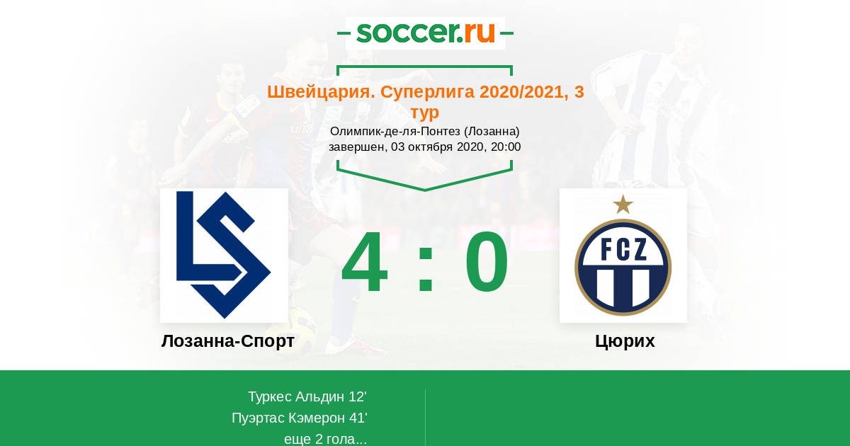 Протокол матча Лозанна-Спорт против Цюрих