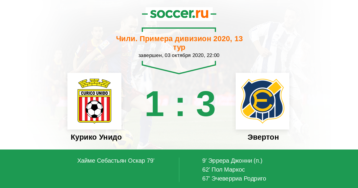 Протокол матча Курико Унидо против Эвертон