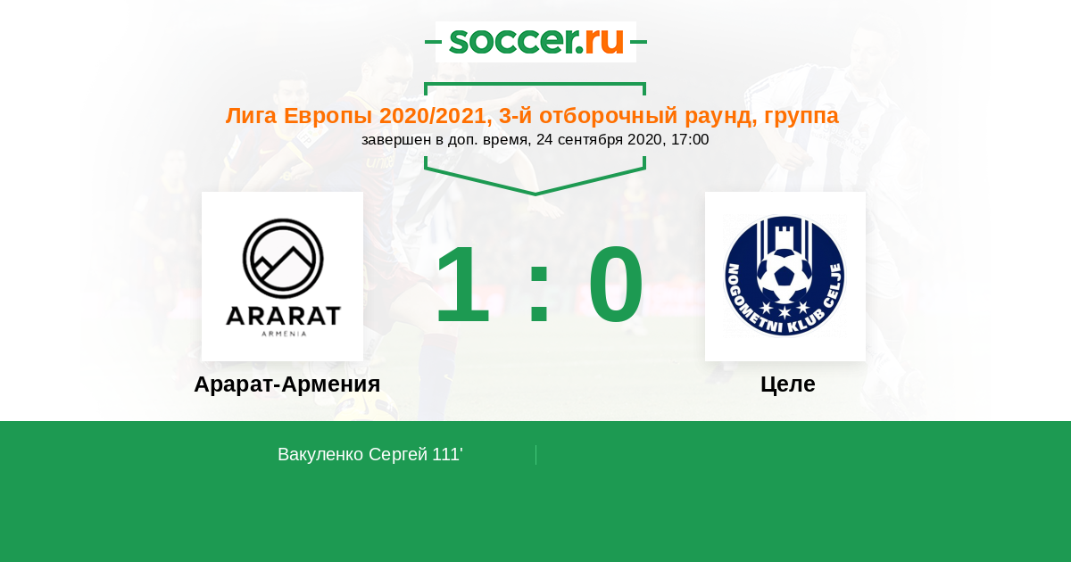 Протокол матча Арарат-Армения против Целе