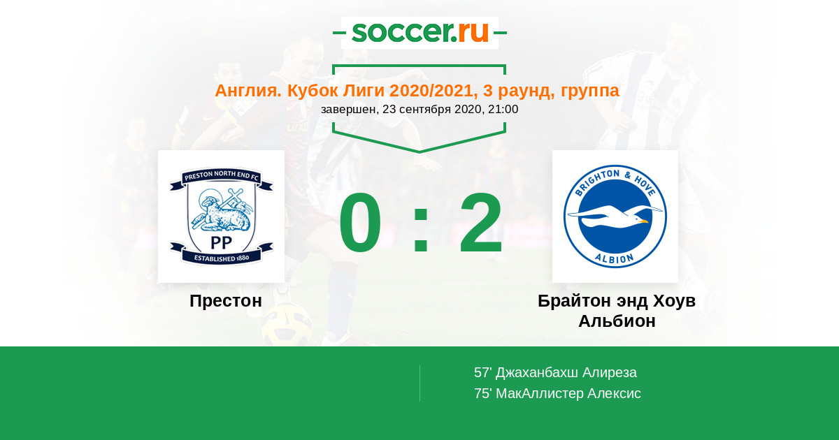 Протокол матча Престон против Брайтон энд Хоув Альбион