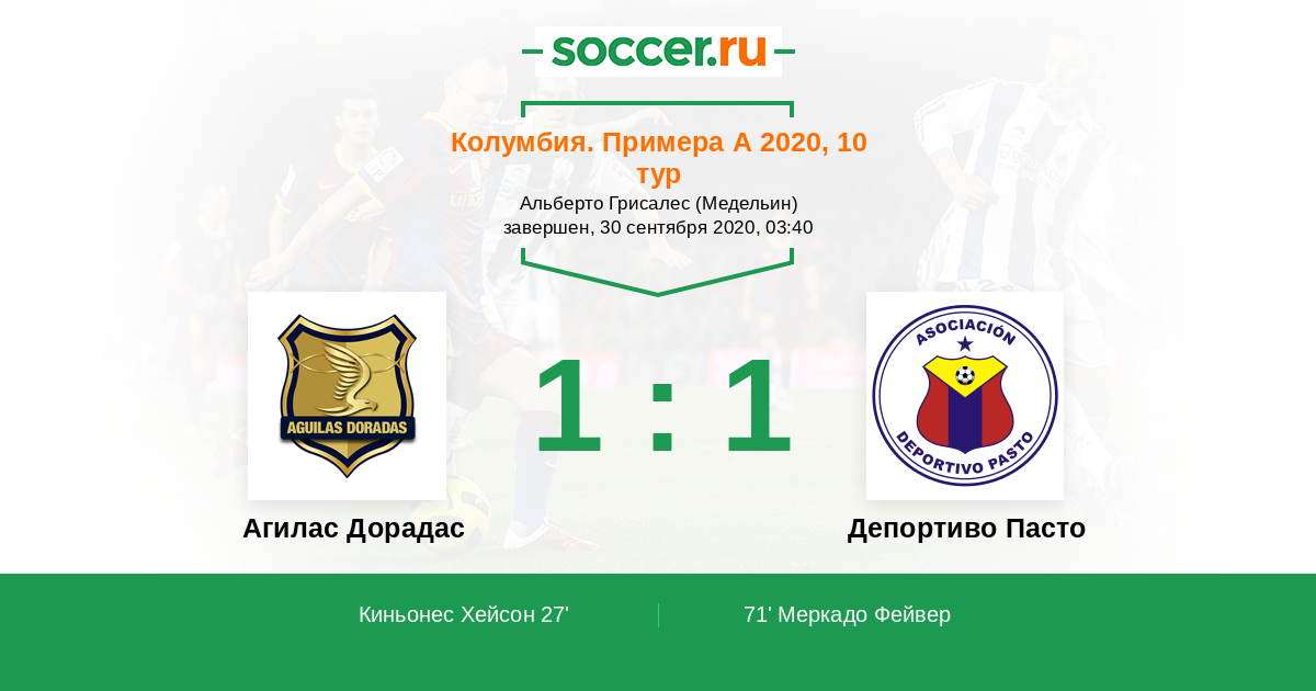 Протокол матча Агилас Дорадас против Депортиво Пасто