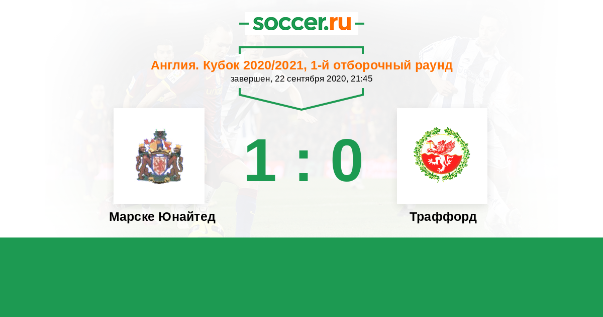 Англия. Первый дивизион истмийской лиги: Север 14.09.2019 Траффорд Логотип футбольный клуб Траффорд (Фликстон) 1:1 Логотип футбольный клуб Марске Юнайтед Марске Юнайтед