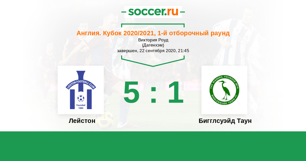 Англия. Истмийский дивизион 17.09.2019 Лейстон Логотип футбольный клуб Лейстон 0:4 Логотип футбольный клуб Бигглсуэйд Таун Бигглсуэйд Таун