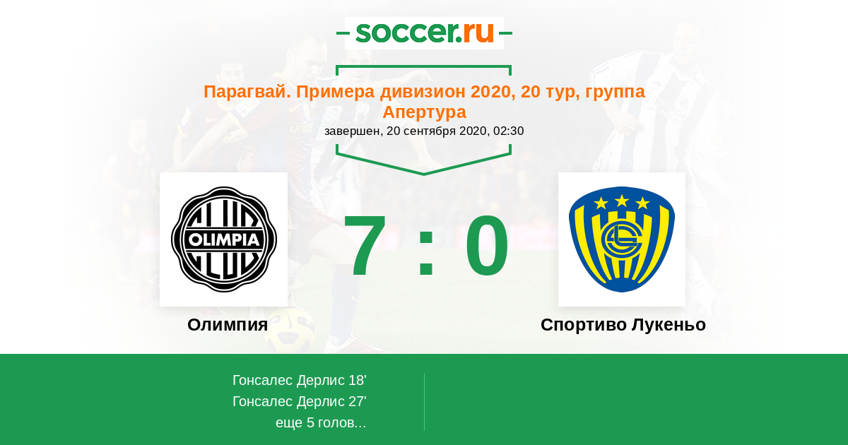 Протокол матча Олимпия против Спортиво Лукеньо