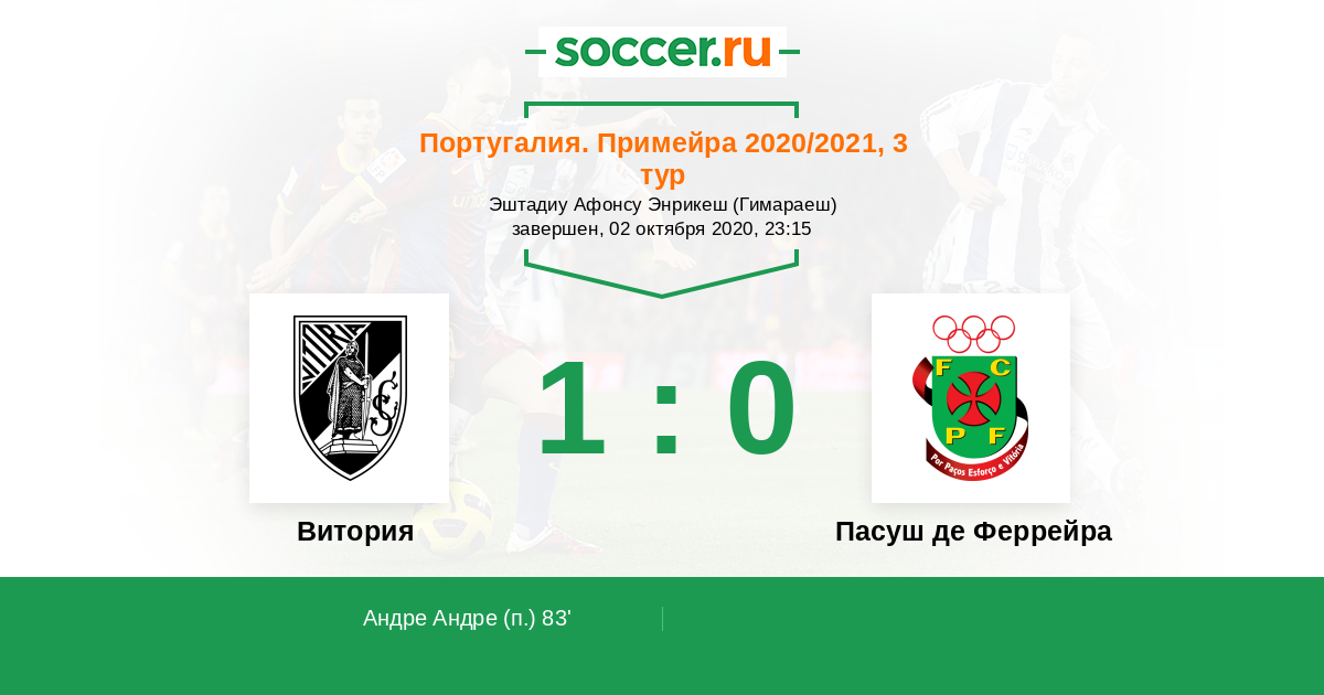 Протокол матча Витория против Пасуш де Феррейра