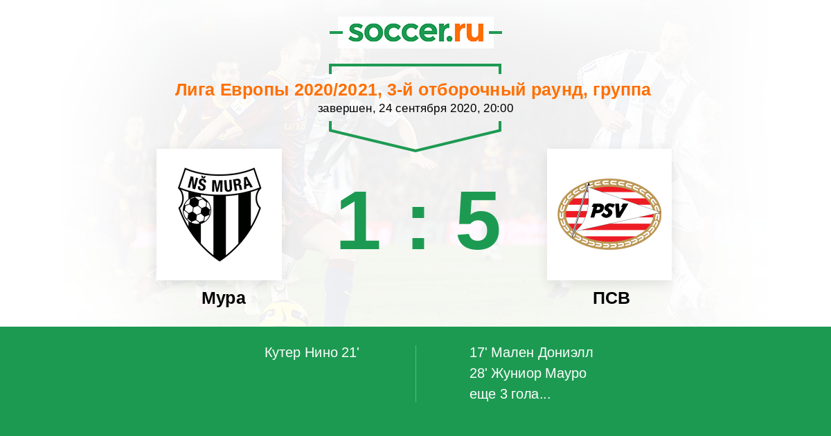 Протокол матча Мура против ПСВ