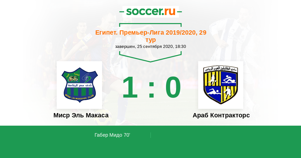 Протокол матча Миср Эль Макаса против Араб Контракторс