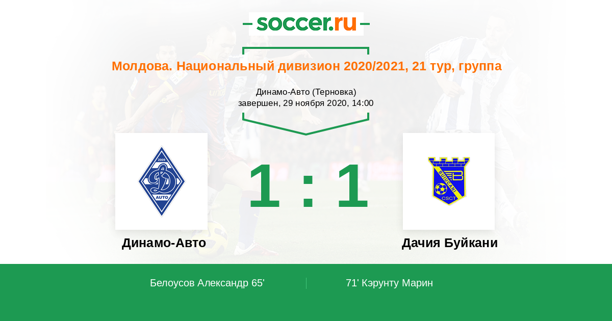 Протокол матча Динамо-Авто против Дачия Буйкани