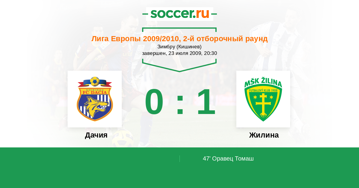 Протокол матча Дачия против Жилина