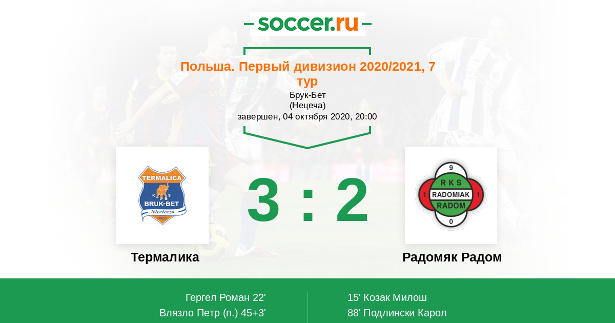 Протокол матча Термалика против Радомяк Радом