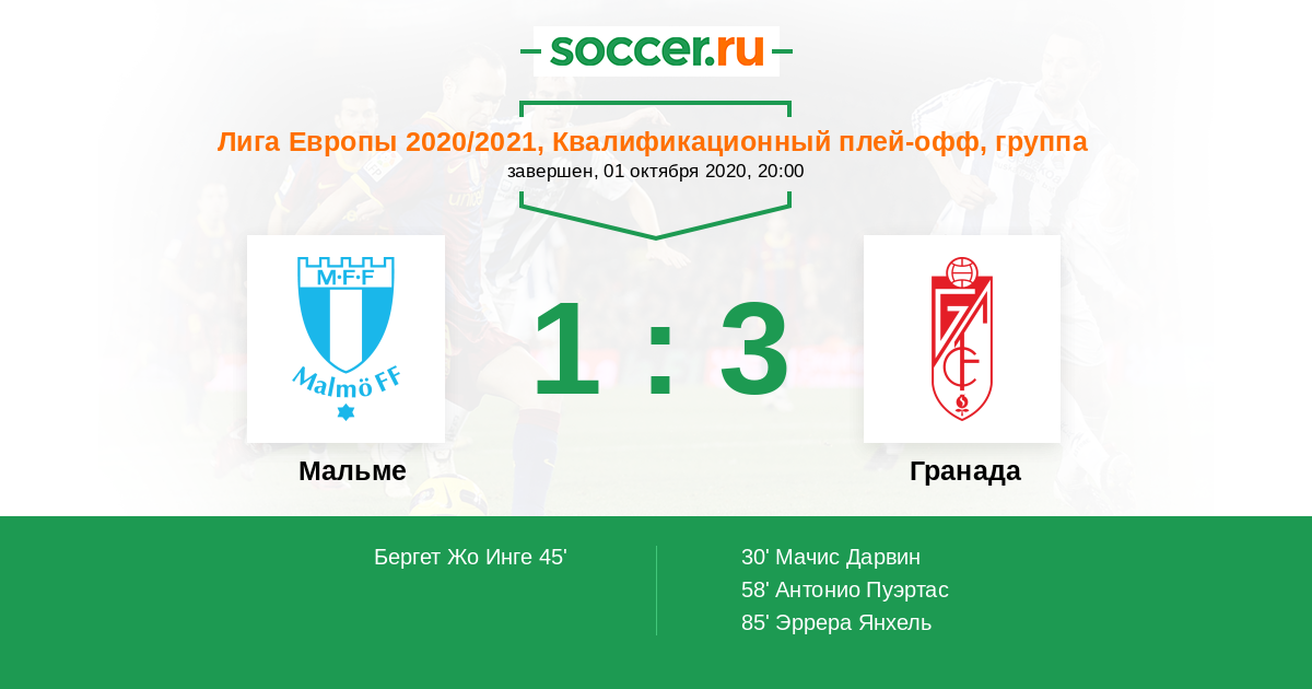 Протокол матча Мальме против Гранада