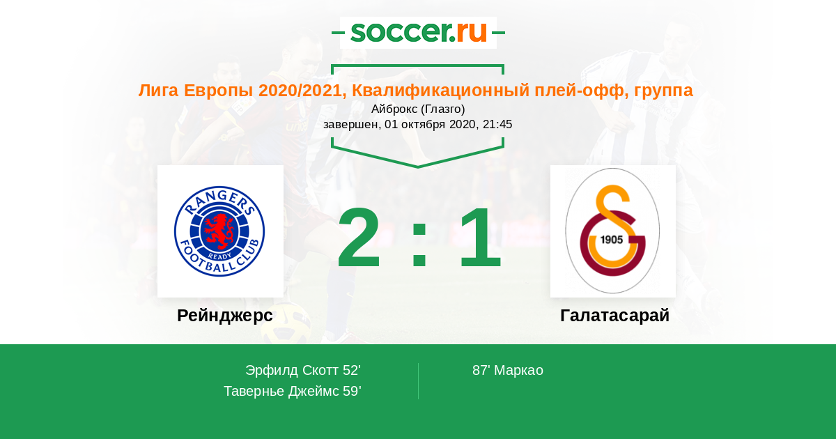 Протокол матча Рейнджерс против Галатасарай