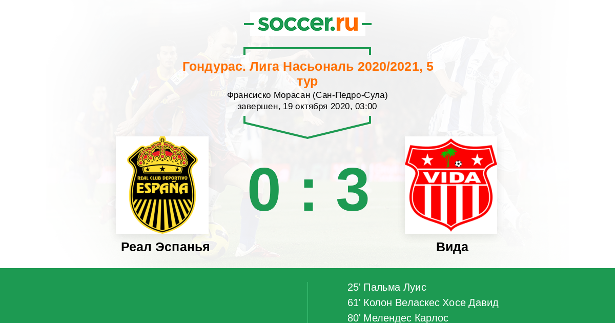 Протокол матча Реал Эспанья против Вида