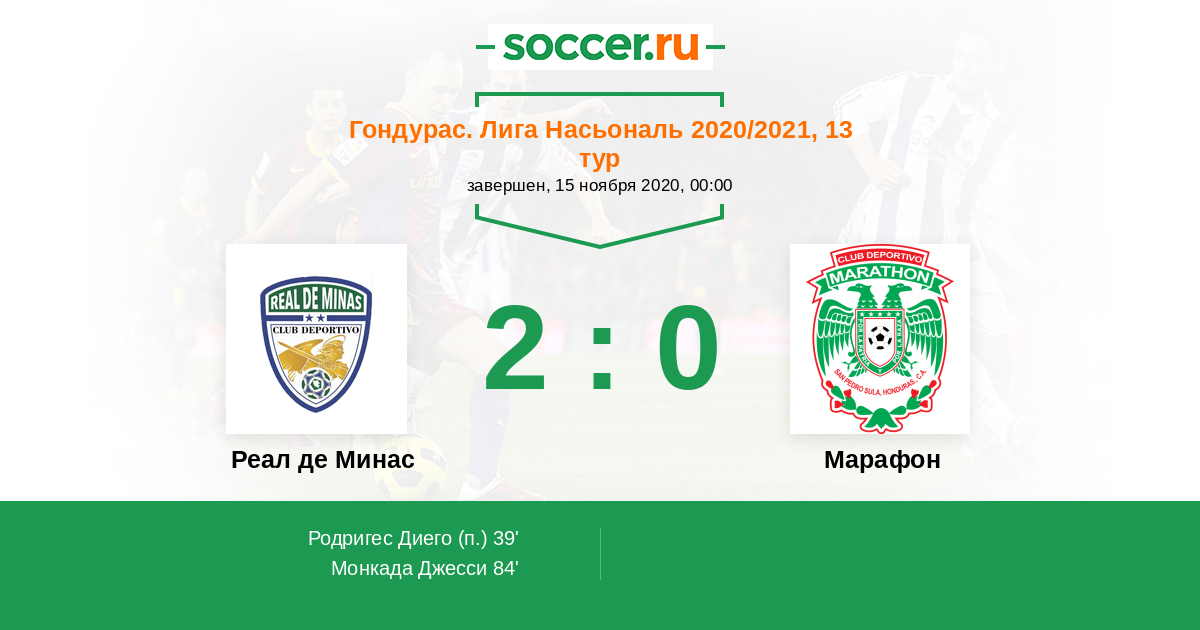 Протокол матча Реал де Минас против Марафон