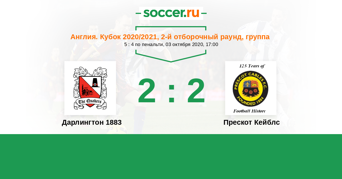 Англия. Первый дивизион истмийской лиги: Север 11.10.2014 Прескот Кейблс Логотип футбольный клуб Прескот Кейблс 0:2 Логотип футбольный клуб Дарлингтон 1883 Дарлингтон 1883