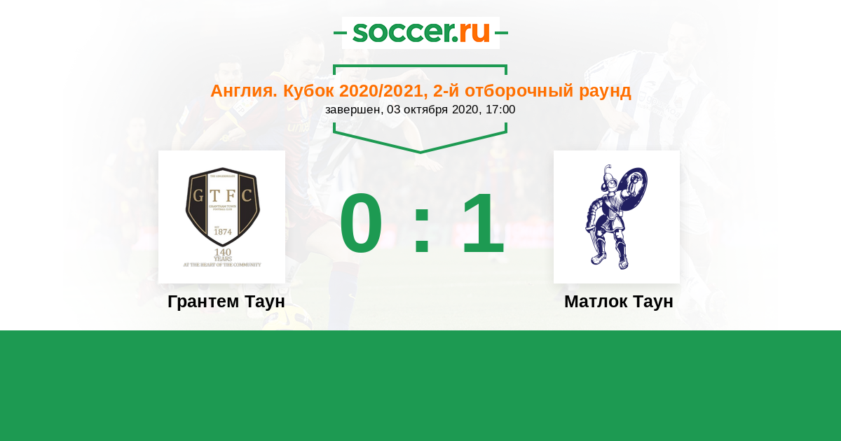 Англия. Истмийский дивизион 26.09.2015 Грантем Таун Логотип футбольный клуб Грантем Таун 2:1 Логотип футбольный клуб Матлок Таун Матлок Таун