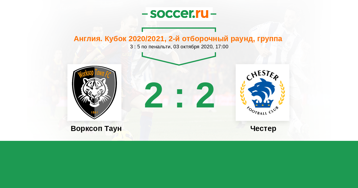 Англия. Трофей Футбольной Ассоциации 10.11.2012 Честер Логотип футбольный клуб Честер 2:2 Логотип футбольный клуб Ворксоп Таун Ворксоп Таун
