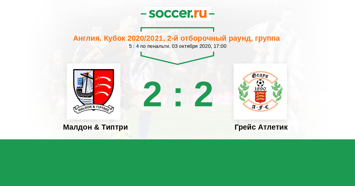 Англия. Первый дивизион истмийской лиги: Север 02.11.2019 Малдон & Типтри Логотип футбольный клуб Малдон & Типтри 3:1 Логотип футбольный клуб Грейс Атлетик Грейс Атлетик