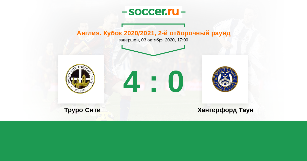 Англия. Кубок 18.09.2021 Хангерфорд Таун Логотип футбольный клуб Хангерфорд Таун 1:0 Логотип футбольный клуб Труро Сити Труро Сити