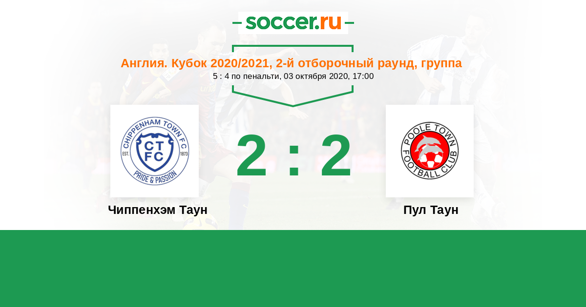 Англия. Кубок 18.09.2021 Пул Таун Логотип футбольный клуб Пул Таун 1:1 Логотип футбольный клуб Чиппенхэм Таун Чиппенхэм Таун