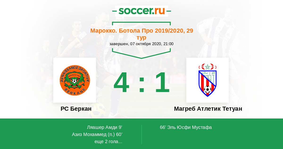 Протокол матча РС Беркан против Магреб Атлетик Тетуан