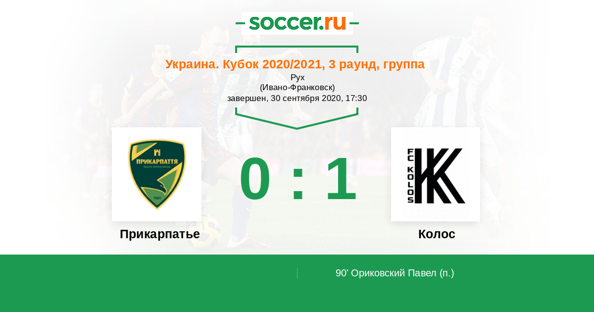 Протокол матча Прикарпатье против Колос