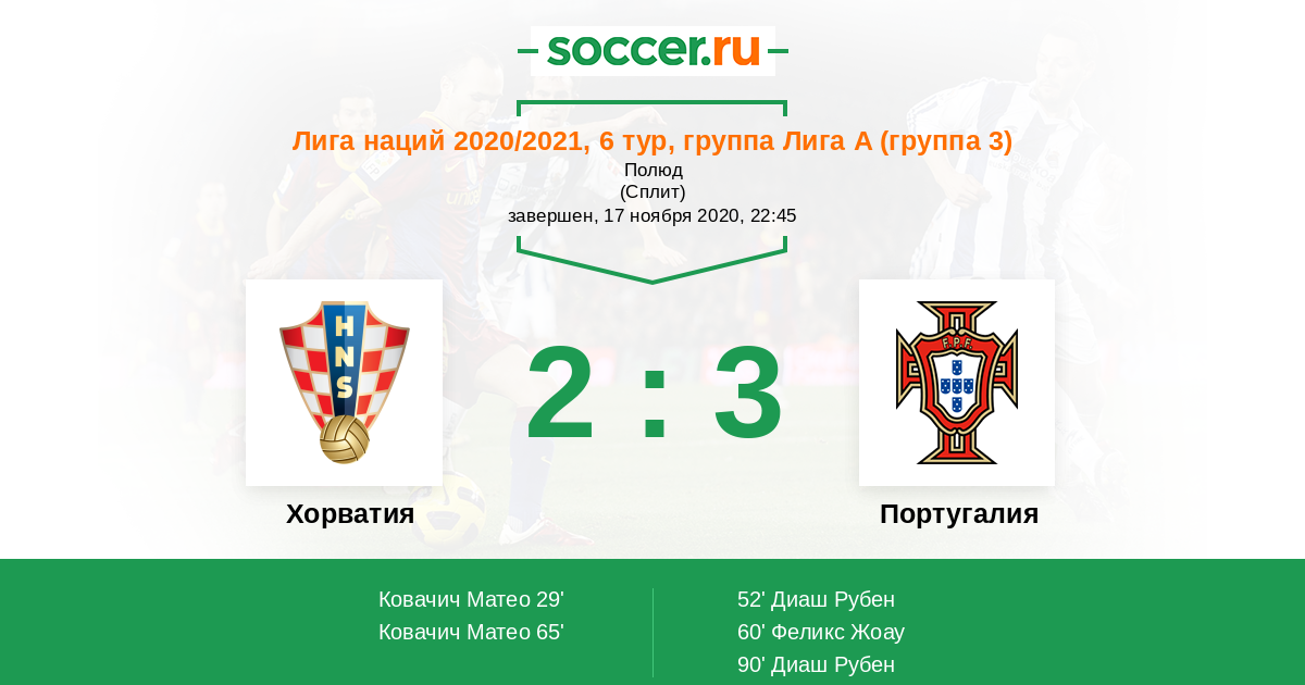 Протокол матча Хорватия против Португалия