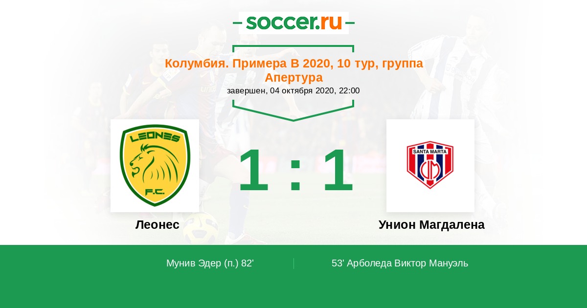 Протокол матча Леонес против Унион Магдалена