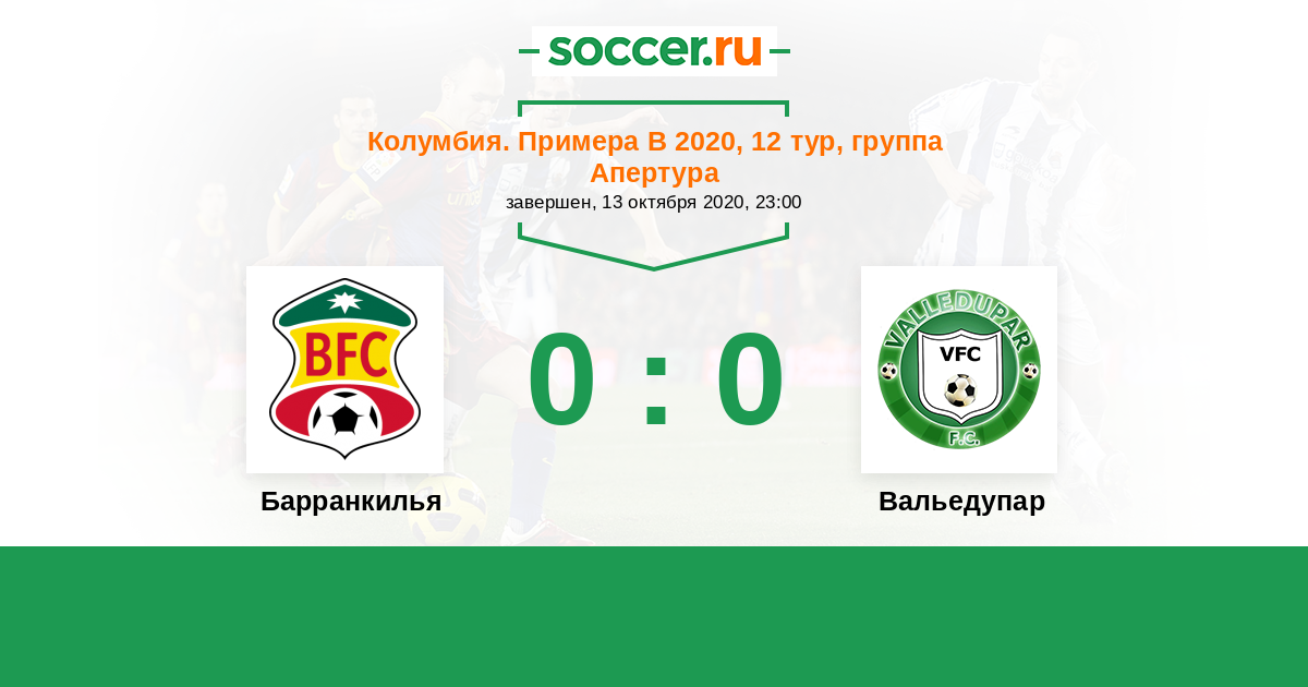Колумбия. Примера B 09.11.2020 Барранкилья Логотип футбольный клуб Барранкилья 0:0 Логотип футбольный клуб Вальедупар Вальедупар