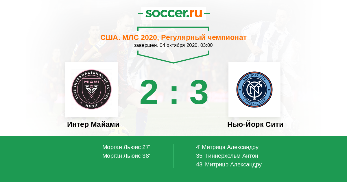 Протокол матча Интер Майами против Нью-Йорк Сити