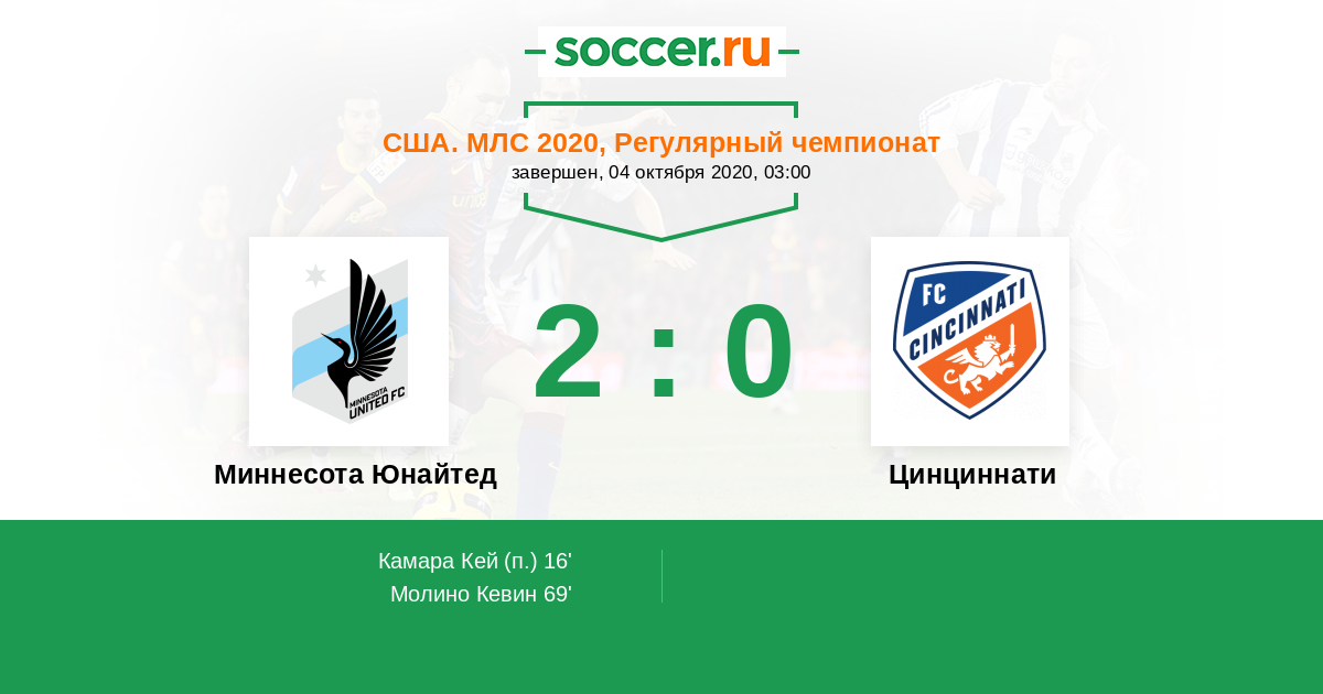 Протокол матча Миннесота Юнайтед против Цинциннати