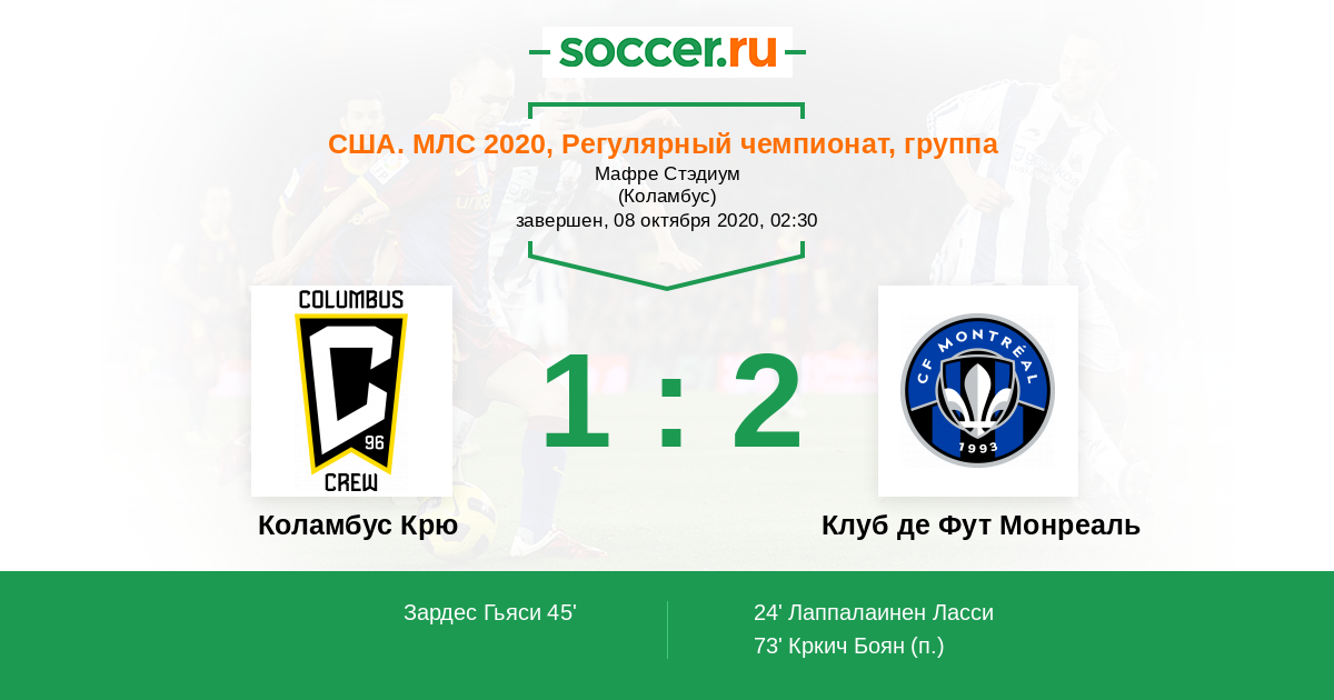 Протокол матча Коламбус Крю против Клуб де Фут Монреаль