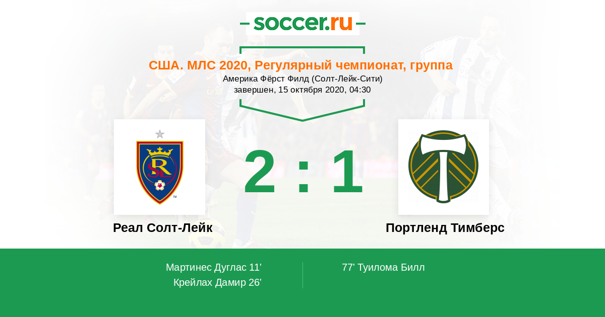 Протокол матча Реал Солт-Лейк против Портленд Тимберс