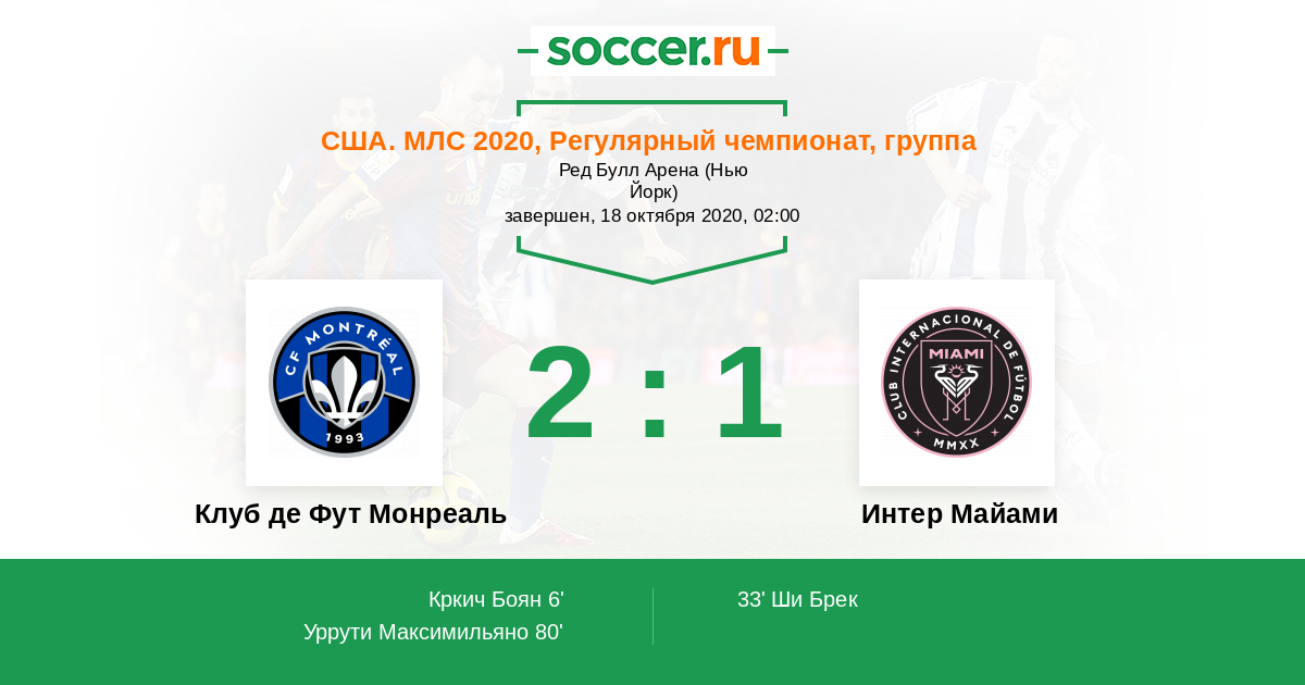 Протокол матча Клуб де Фут Монреаль против Интер Майами