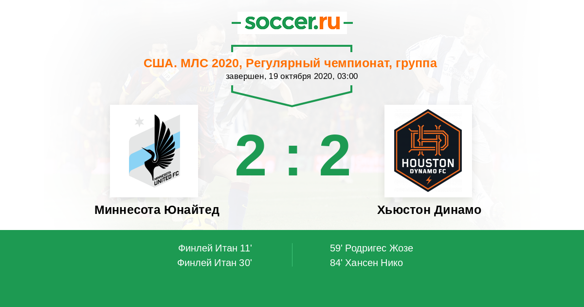 Протокол матча Миннесота Юнайтед против Хьюстон Динамо