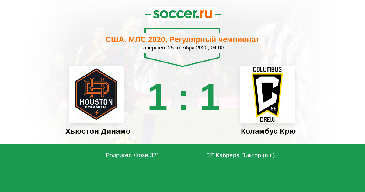 Протокол матча Хьюстон Динамо против Коламбус Крю