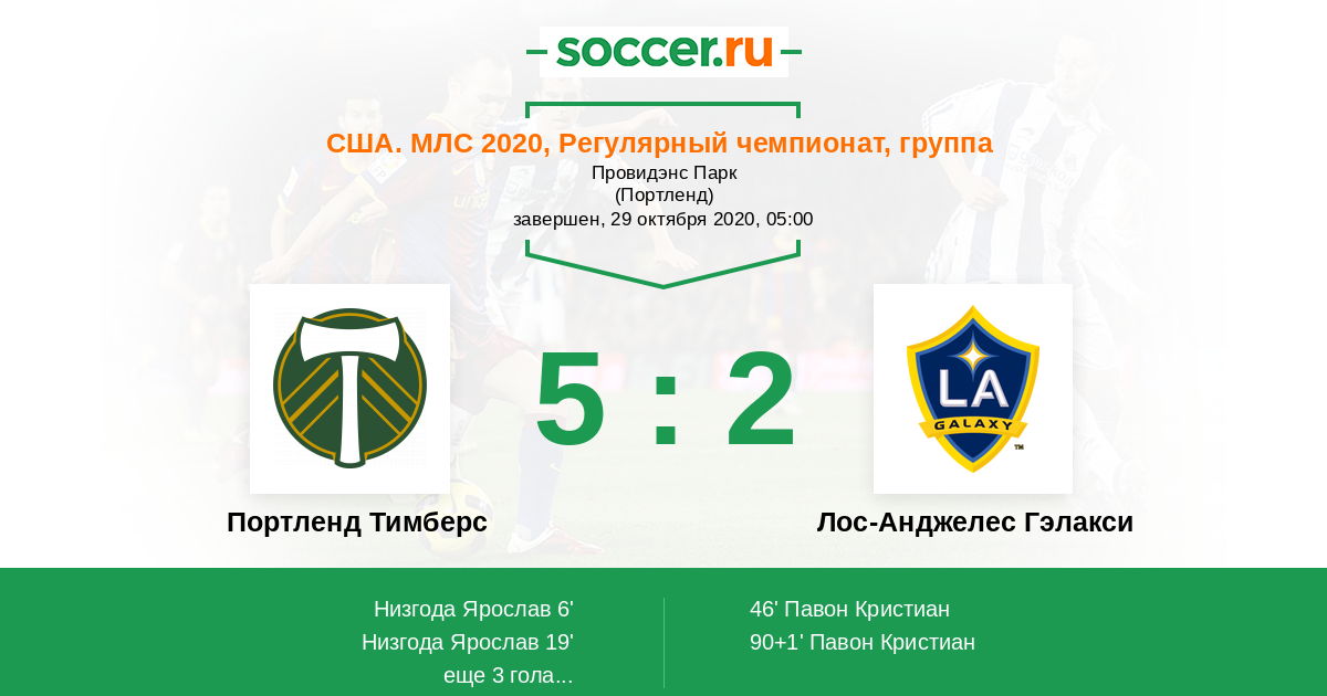 Протокол матча Портленд Тимберс против Лос-Анджелес Гэлакси