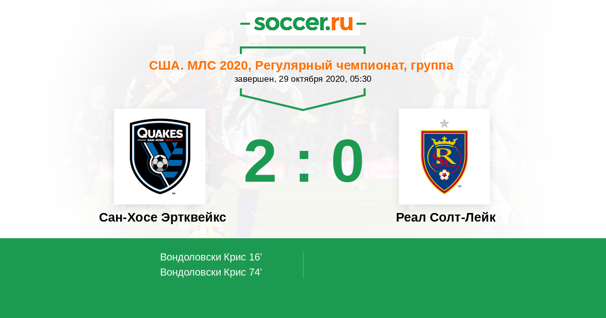 Протокол матча Сан-Хосе Эртквейкс против Реал Солт-Лейк