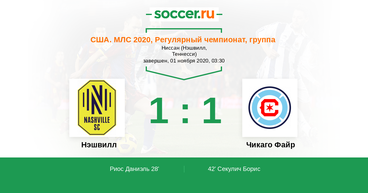 Протокол матча Нэшвилл против Чикаго Файр