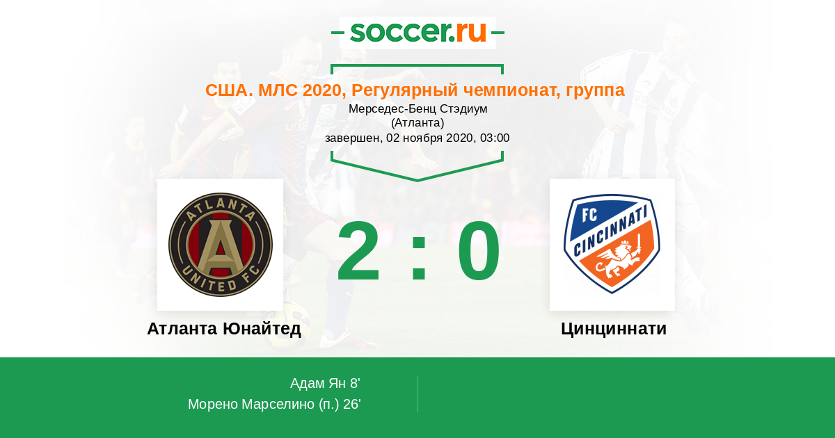 Протокол матча Атланта Юнайтед против Цинциннати
