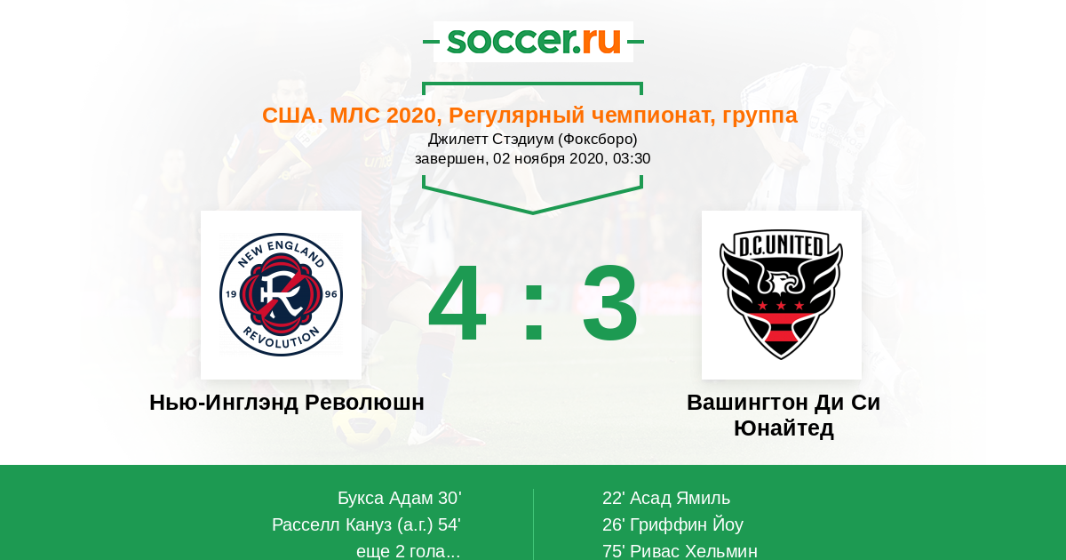 Протокол матча Нью-Инглэнд Революшн против Вашингтон Ди Си Юнайтед