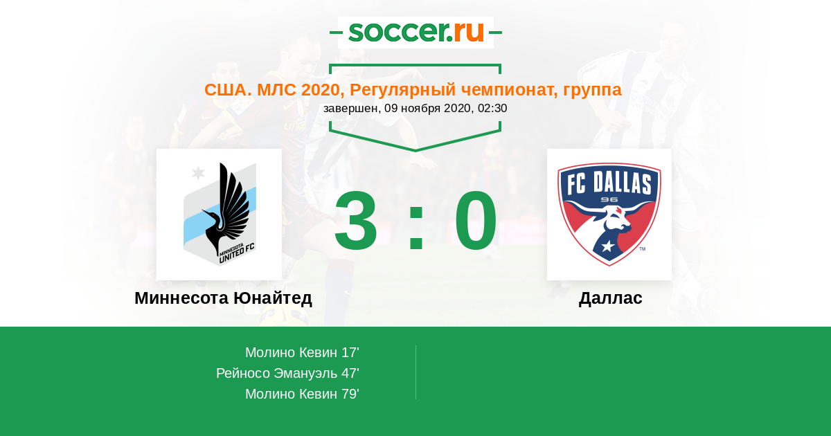Протокол матча Миннесота Юнайтед против Даллас