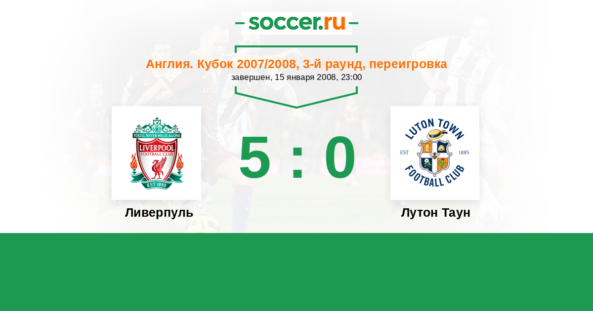 Англия. Кубок 06.01.2008 Лутон Таун Логотип футбольный клуб Лутон Таун 1:1 Логотип футбольный клуб Ливерпуль Ливерпуль