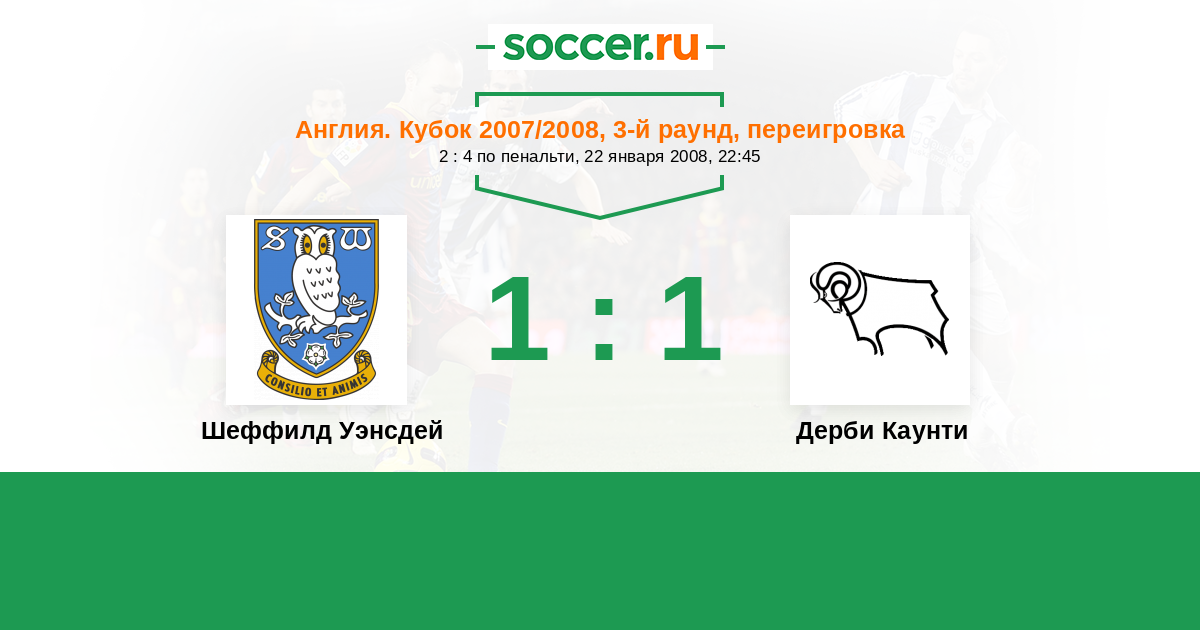 Англия. Кубок 06.01.2008 Дерби Каунти Логотип футбольный клуб Дерби Каунти 2:2 Логотип футбольный клуб Шеффилд Уэнсдей Шеффилд Уэнсдей