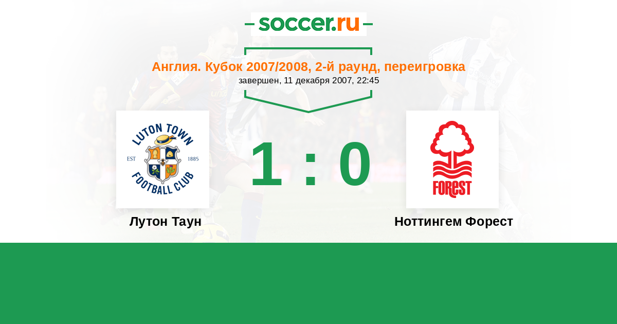 Англия. Первая Футбольная Лига 27.10.2007 Лутон Таун Логотип футбольный клуб Лутон Таун 2:1 Логотип футбольный клуб Ноттингем Форест Ноттингем Форест