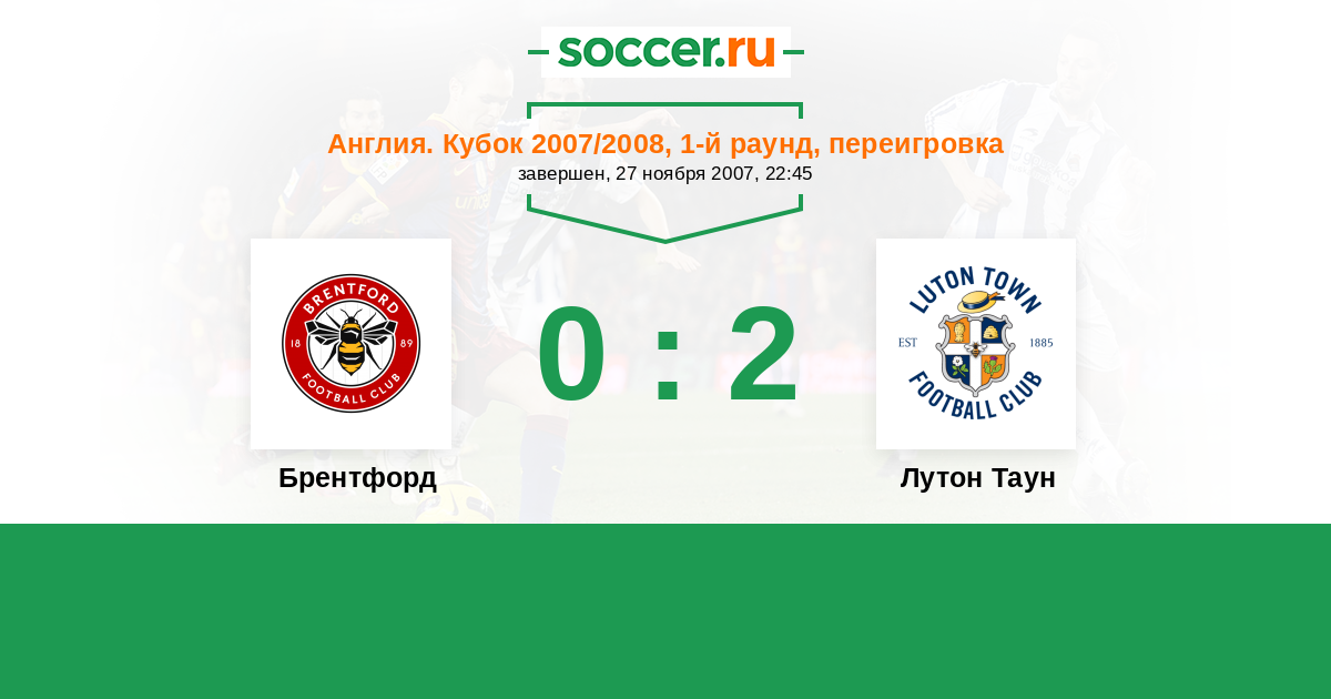 Англия. Кубок 10.11.2007 Лутон Таун Логотип футбольный клуб Лутон Таун 1:1 Логотип футбольный клуб Брентфорд (Лондон) Брентфорд